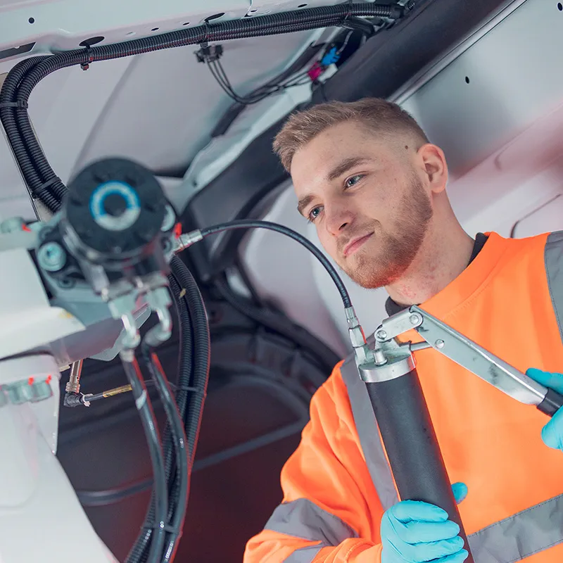 The slew rings on our van-mounted platforms are inside the vehicle. They are therefore protected from the elements and easy to inspect and grease.